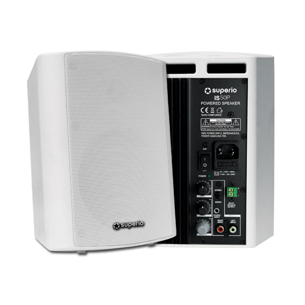IS50P består av en aktiv högtalare samt en passiv. Den aktiva högtalaren har inbyggd stereoförstärkare med reglage för volym, bas & diskant på baksidan. IS50P använder Superio's ASF-Technology som automatiskt försätter högtalarna i standby-läge när ingen linjesignal känns av på någon av ingångarna. Detta spar både energi och ökar produktens livslängd. IS50P har också en ljudbrumsreducerande krets integrerad i förebyggande syfte. Tack vare detta kan IS50P reducera risken för jordbrum med ca. 90%