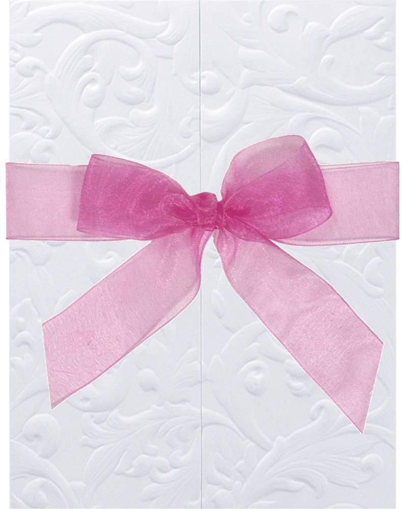 Florence är ett elegant kort med en vacker prägling på ett vitt slätt papper. Kortet försluts på ett smakfullt sätt med ett organzaband.