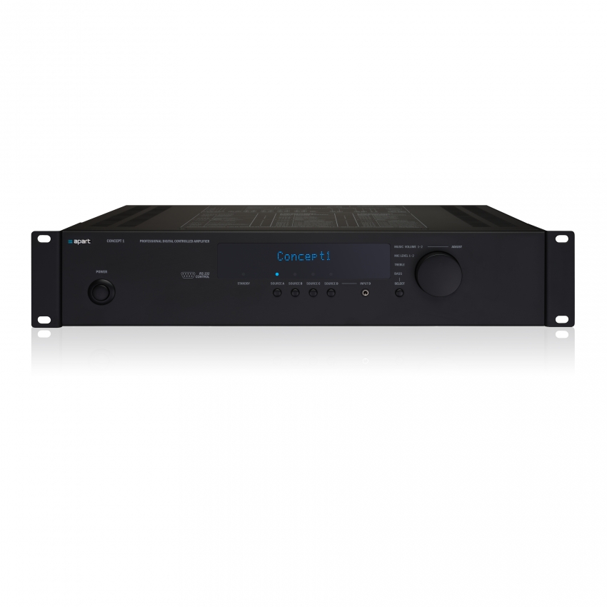 For a long time, installers worldwide have been unhappy with consumer electronics and they were looking for a professional integrated amplifier for use in commercial environments, boardrooms or small businesses designed for 24/7 operation. Therefore Apart developed the CONCEPT1T, a stereo or two mono channel (2 x 60 watts in 100 volt) amplifier for small and medium-sized projects.